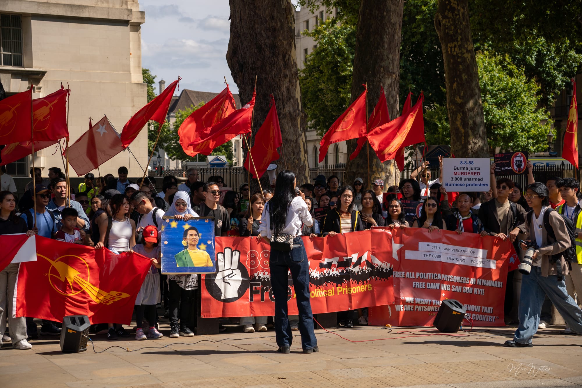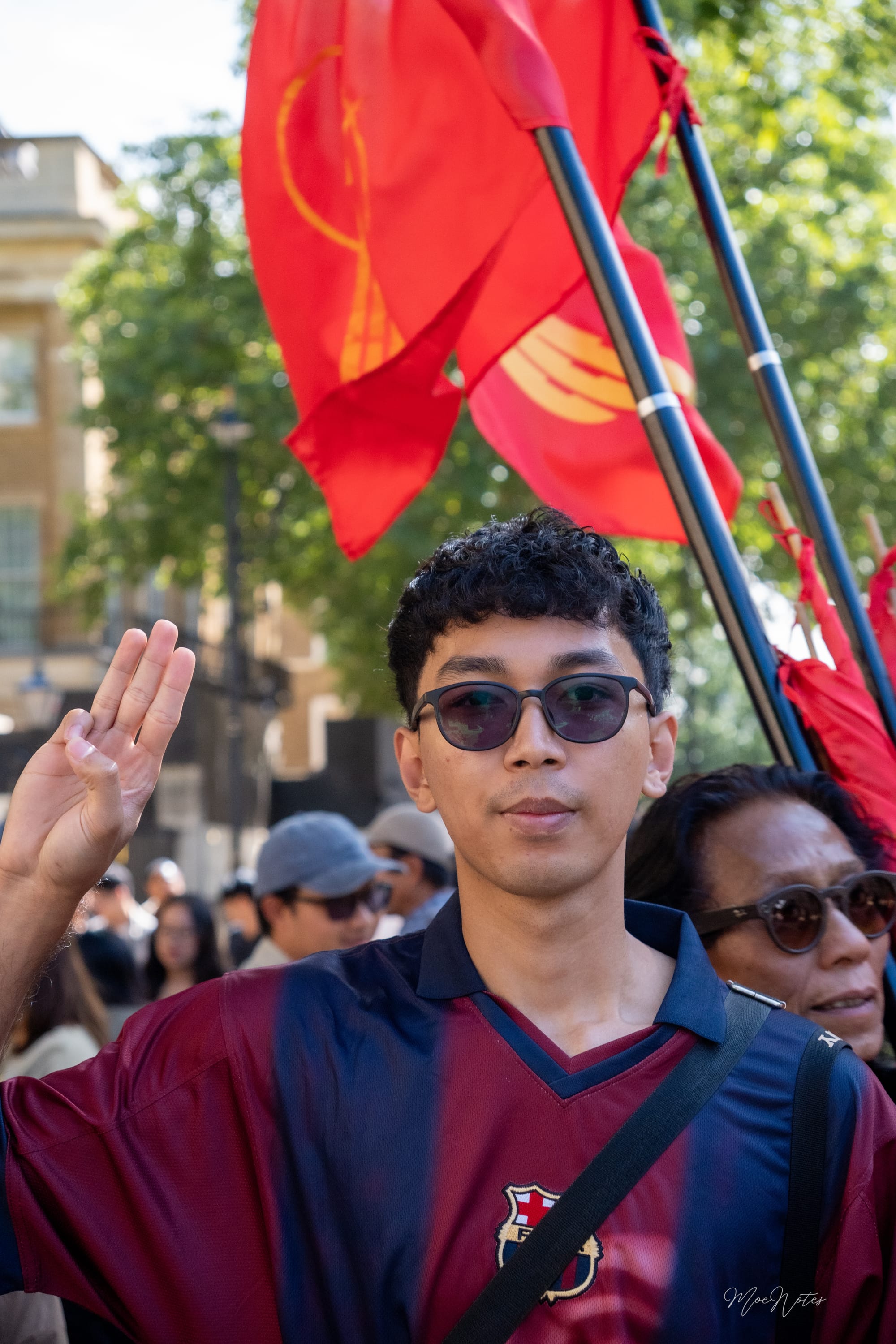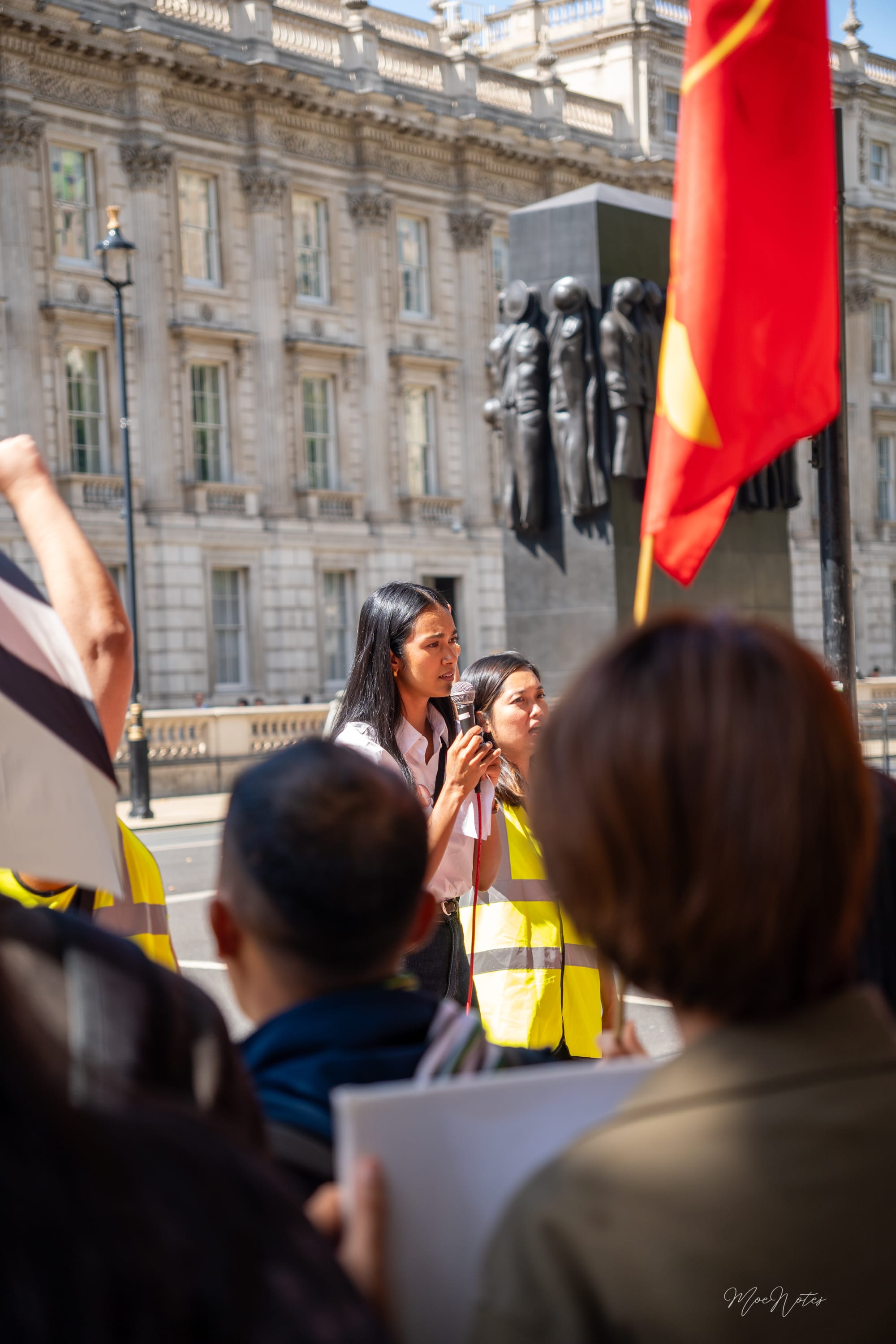 လန်ဒန်မြို့လယ်က Parliament Square မှာ အနီရောင်ဒေါင်းအလံတွေလွင့်ပျံတဲ့နေ့။ ဗီဒီယို/ဓာတ်ပုံဆရာတစ်ဦးအနေနဲ့ ကျနော့်အလုပ်က မှတ်တမ်းတင်ရုံပါ၊ သို့သော်ကျနော် မျက်နှာတွေကို မြင်နေရတယ်။