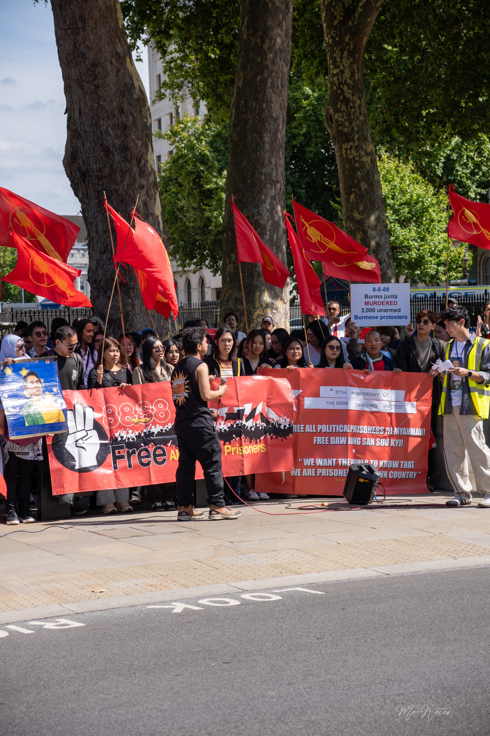 ၈၈၊ လွန်ခဲ့ပြီးသော လွတ်လပ်ရေးတိုက်ပွဲတွေနဲ့ ယခု နွေဦးတော်လှန်ရေးမှာ အသက်ပေးခဲ့ရတဲ့ ရဲဘော်တွေကိုယ်စား တက်ရောက်လာတဲ့ ရှေ့မီနောက်မီ လူကြီးတွေရဲ့ မျက်နှာတွေ... ပြီးတော့ ဒီတိုက်ပွဲကို အဆုံးသတ်ဖို့ ကြိုးစားနေကြတဲ့ နွေဦးတော်လှန်ရေး မျိုးဆက်သစ်တွေရဲ့ မျက်နှာတွေ။