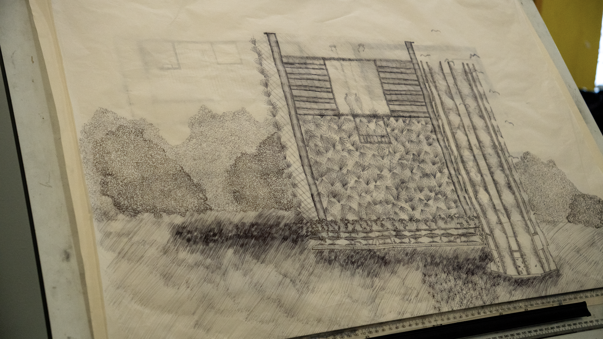 - ဒါဟာ ဗိသုကာကျောင်းသားက သူအဆောက်အအုံဆောက်မယ့် မြေကွက် (Site) ကို အသေးစိတ်လေ့လာတာပါ။ မြေကွက်က နေရောင်ခြည်ဘယ်ဘက်ကရလဲ၊ လေဘယ်ကလာလဲ၊ ပတ်ဝန်းကျင်မှာ ဘာအဆောက်အအုံတွေရှိလဲ၊ မြေအမျိုးအစားကဘာလဲ စတာတွေကိုထည့်သွင်းစဉ်းစားရပါတယ်။ ကိုယ့်ဒီဇိုင်းကို အကုန်လုံးနဲ့အဆင်ပြေအောင်ဖန်တီးကြရပါတယ်။