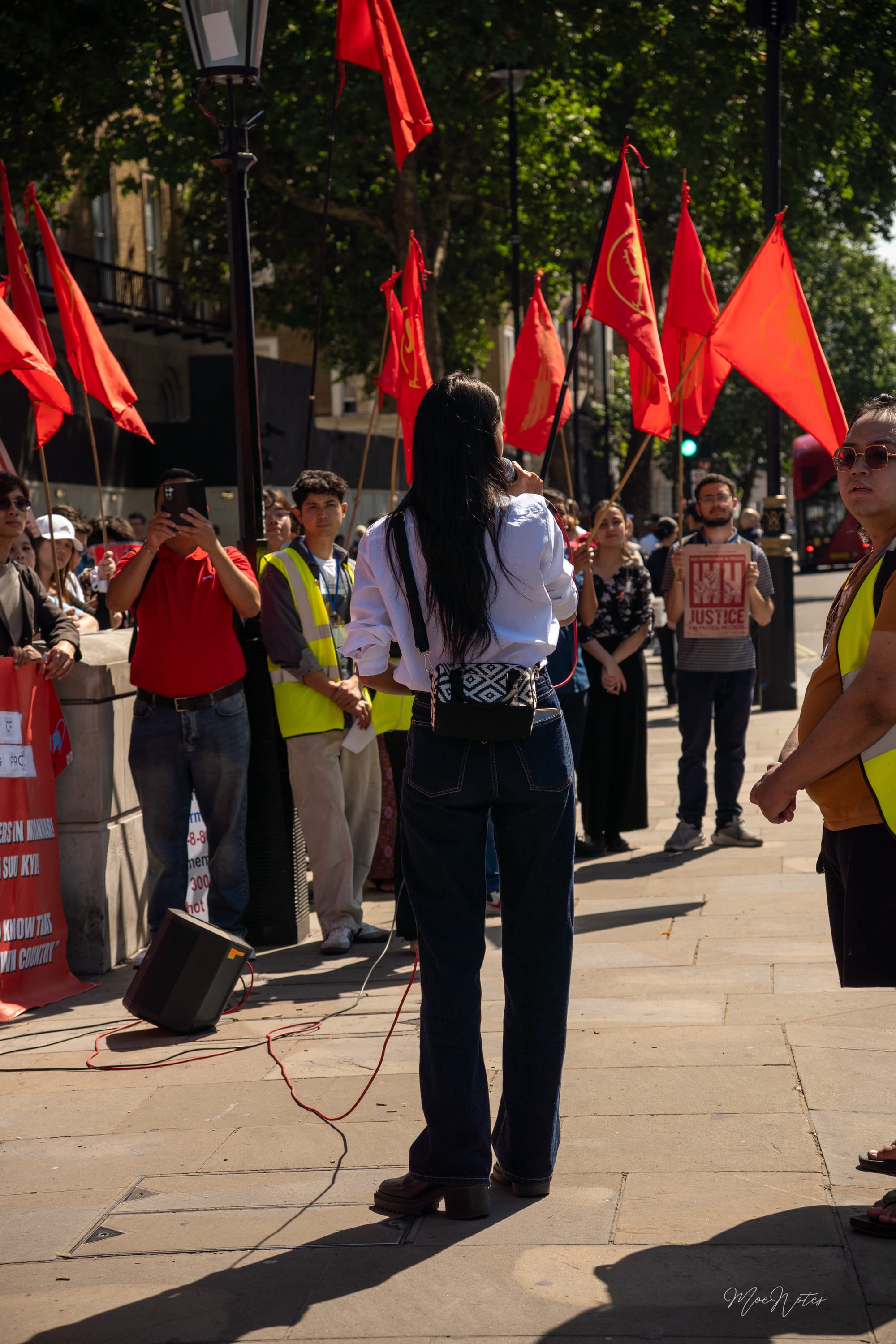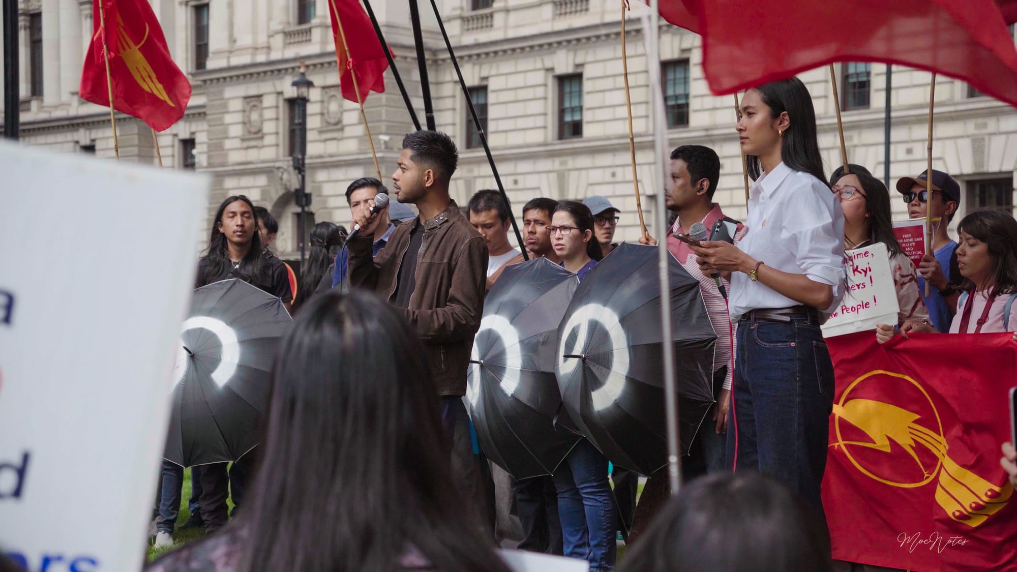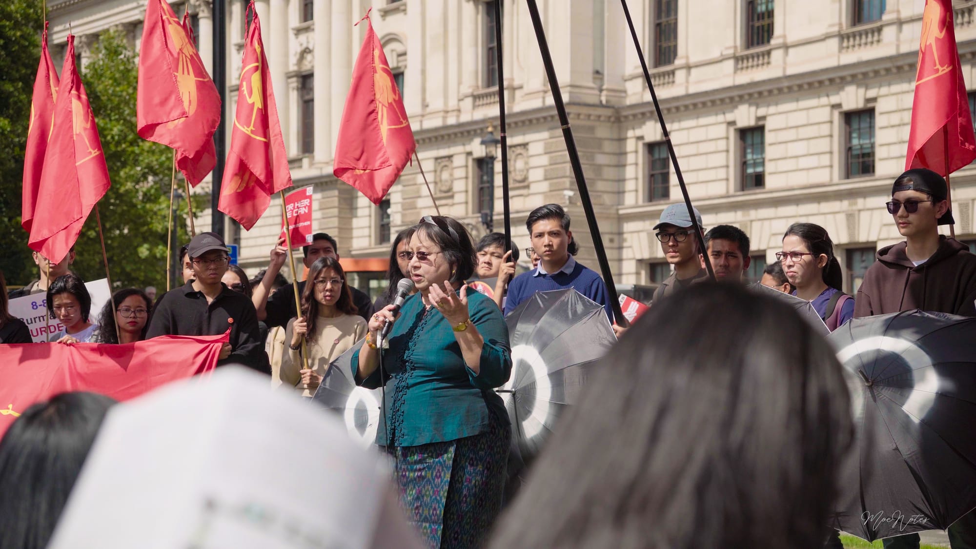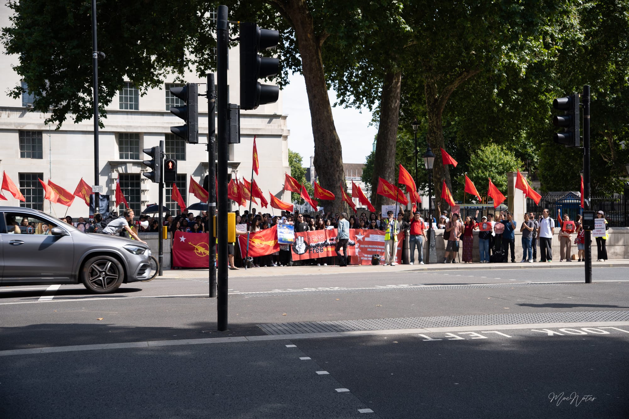 8/8/2025. A day the red peacock flags flew in Parliament Square, central London. As a videographer/photographer, my job is simply to document, but what I see are the faces. The faces of the elders, the veterans, attending on behalf of the comrades who gave their lives in '88, in past freedom struggles, and now in the Spring Revolution. And then, the faces of the new Spring Revolution generation, who are trying to end this fight.
