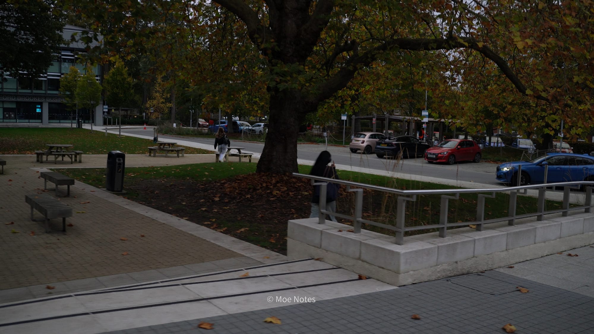 ကျနော်ထိုင်နေကြ mapleပင်အောက်ကနေရာလေး။ သစ်ရွက်လေးတွေကြွေနေပြီ။ ဝါရင့်လာရောပေါ့။ ကားပါကင်တော့ရှိပေမယ့် Oxford မှာ ကျောင်းသွားကျောင်းပြန်အကောင်းဆုံးက ကားမဟုတ်ဘူးနော်။