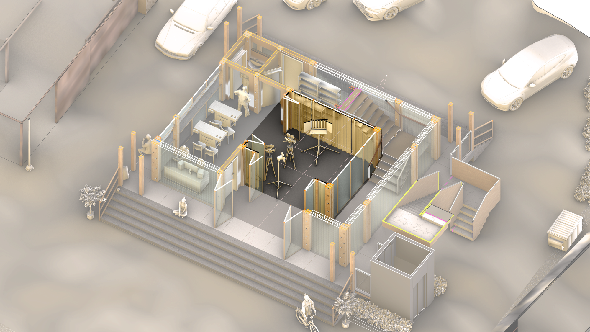 နေရာတစ်ခုကို ဒီဇိုင်းမဆွဲမီ၊ အသုံးပြုမယ်လို့ မိမိရည်ရွယ်မယ့်သူကို နားလည်ဖို့ သိပ်အရေးကြီးတယ်။ Oxfordမြို့မှာ ရုပ်ရှင်စတူဒီယိုတစ်ခုဖန်တီးမယ်ဆို အဆင်ပြေနိုင်မလား။ ဒီလိုနဲ့Researchလုပ်တယ်။ Oxford University ရဲ့ OUFF ကဲ့သို့သော တက္ကသိုလ်အသင်းအဖွဲ့များမှ Film Oxford ကဲ့သို့သော ဒေသခံအဖွဲ့များအထိ— ရိုက်ကူးရေးကို စိတ်ဝင်စားတဲ့ ဝါသနာရှင်တွေ၊ ကားကောင်းတွေဆို ကြည့်ချင်တဲ့ရုပ်ရှင်ချစ်သူတွေ စတဲ့ ကွဲပြားတဲ့အသိုက်အဝန်းတစ်ခုကို မြင်တွေ့ခဲ့ရတယ်။ ဒီ 'အသိုက်အဝန်း' ခေါ် Userတွေအတွက် သင်ယူခြင်းနှင့် ပူးပေါင်းဆောင်ရွက်ခြင်းမှသည် ထုတ်လုပ်ရေးနှင့် လူထုရှေ့မှောက်ပြသခြင်းအထိ၊ ဖန်တီးမှုဖြစ်စဉ်၏ အဆင့်တိုင်းကို ပံ့ပိုးပေးနိုင်မယ့် ပြောင်းလွယ်ပြင်လွယ်တဲ့ နေရာတစ်ခုလိုအပ်တယ်ဆိုတာလဲ သိခဲ့ရတယ်။