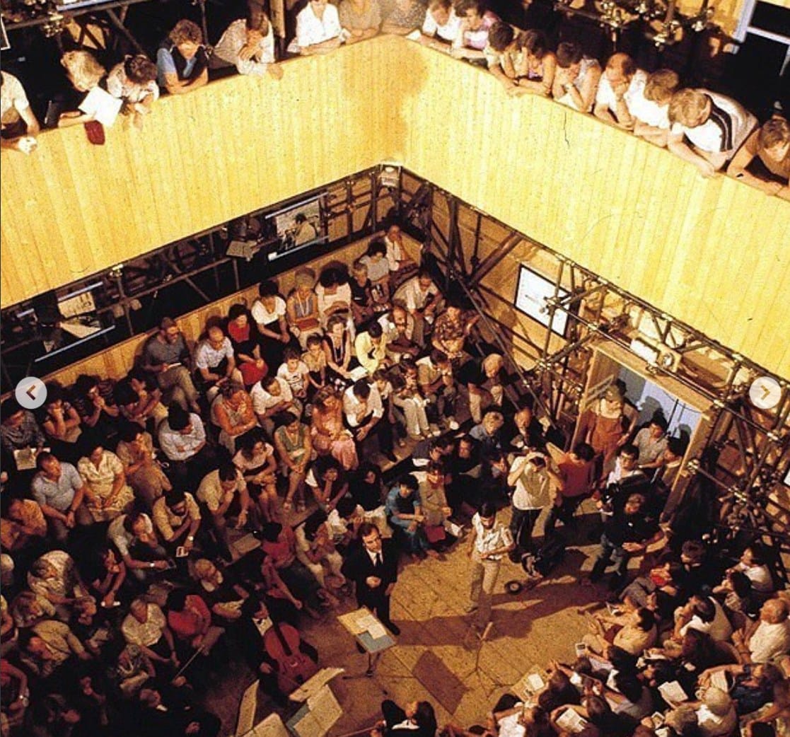 သူ့ဆီက ကျနော်သိလိုက်ရတာက"ကြည့်ရှုရန်နှင့် ကြည့်ရှုခံရန်" "To see and be seen" ဆိုလိုတာကတော့ ပြဇာတ်ရုံထဲကသူတွေက Veniceမြို့ရဲ့တူးမြောင်းတွေ လှေလေးတွေ ရေပေါ်ဘဝလေးတွေကို လှမ်းမြင်နေရတယ် 'To See' ။ ဟော အများပြည်သူတွေကလဲ အင်မတန်ထူးဆန်းလှတဲ့အဆောက်အဦးရဲ့ မြင်သာတဲ့ ဒီဇိုင်းကြောင့် ငေးမောကြကုန်တယ်။ အဆောက်အဦးက အကြည့်ခံနေရတယ်။ 'Be Seen' ။ ဒီပုံစံကြောင့် စင်မြင့်နှင့် ပရိသတ်၊ စတူဒီယိုနှင့် မြို့ပြတို့ကြားက ခြားနားမှုကို မှေးမှိန်စေခဲ့တယ်။